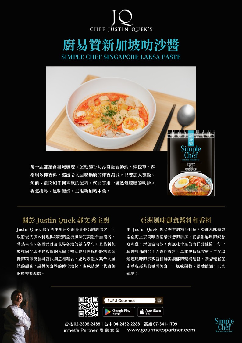 產地:新加坡 保存方式:恆溫(18℃或常溫) 品牌名稱(中):廚易贊 JQ GLOBAL
