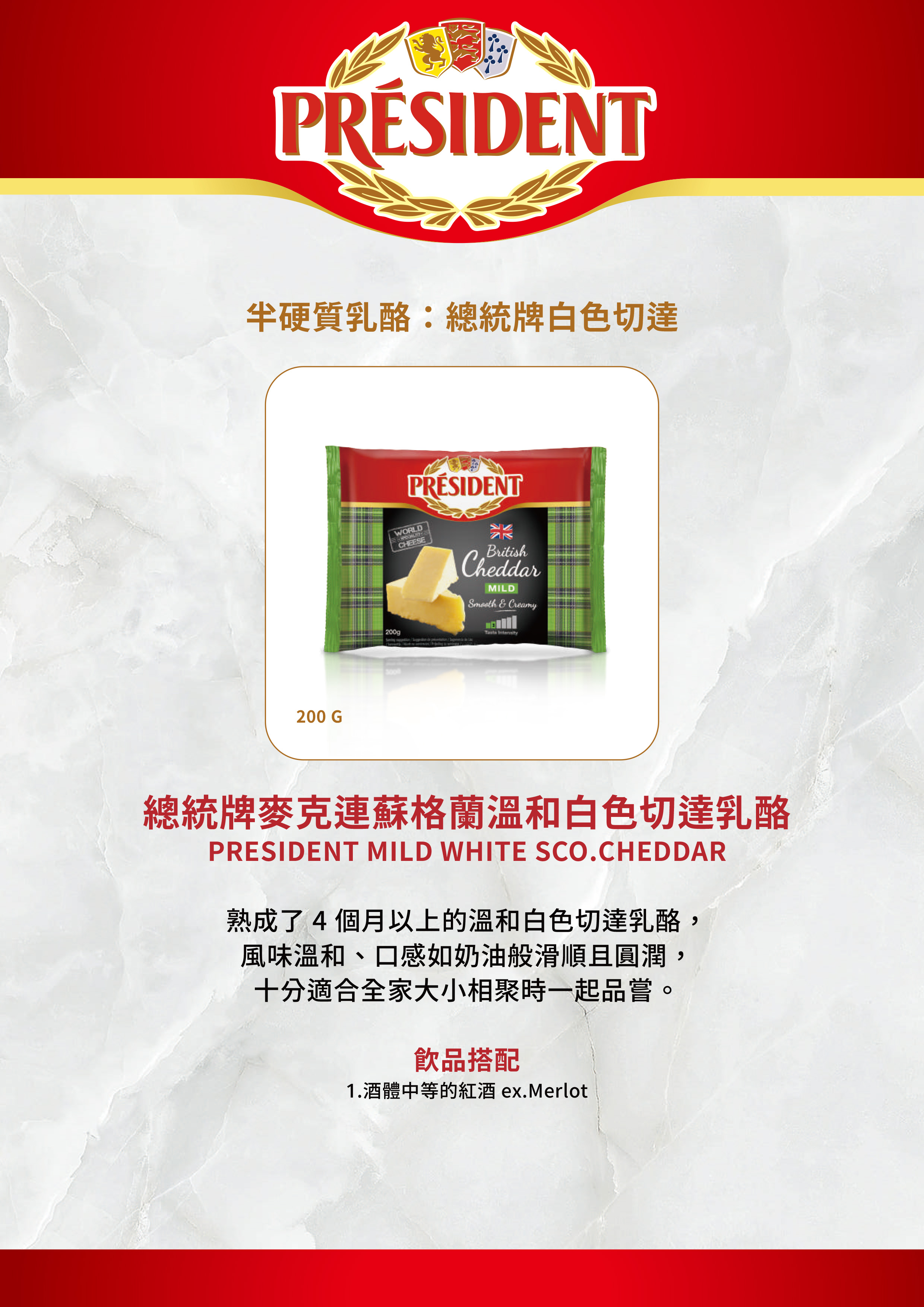 (200克)總統牌麥克連蘇格蘭溫和白色切達乳酪